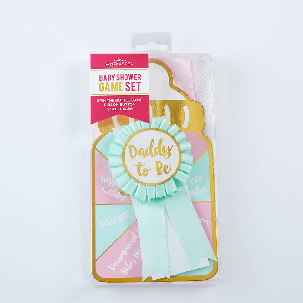 This baby shower belly sash and game set from kate aspen is an entertaining delight for your party guests. This all in one game set includes a lovely pink belly sash for mom and a snazzy ribbon pin for dad to help make them feel special for the life that awaits them with a new baby. The baby shower game spinner game is sure to be fun for all and appropriate for kids of all ages!