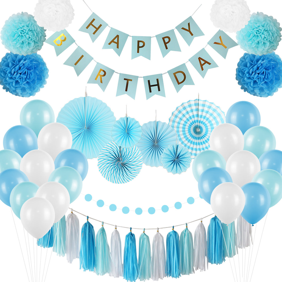 Blue Happy Birthday Decoration Kit - 49 Pieces!