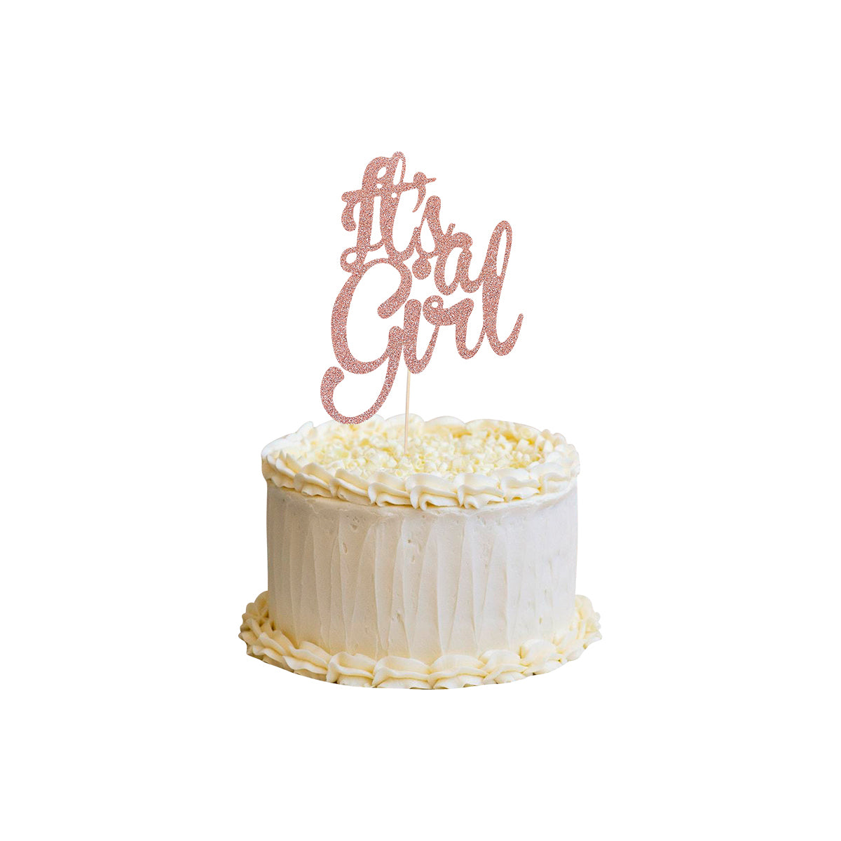 Ugh, What an adorable rose gold & sparkling scripted "Its A Girl" cake topper!