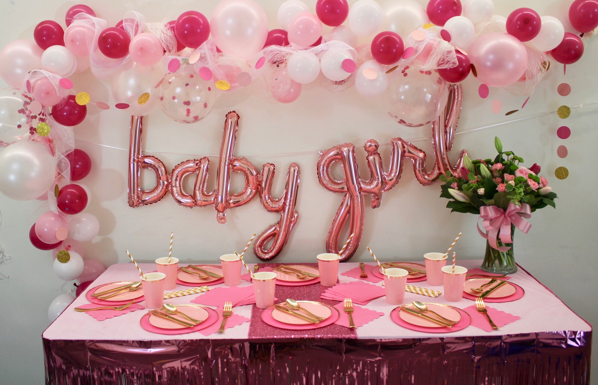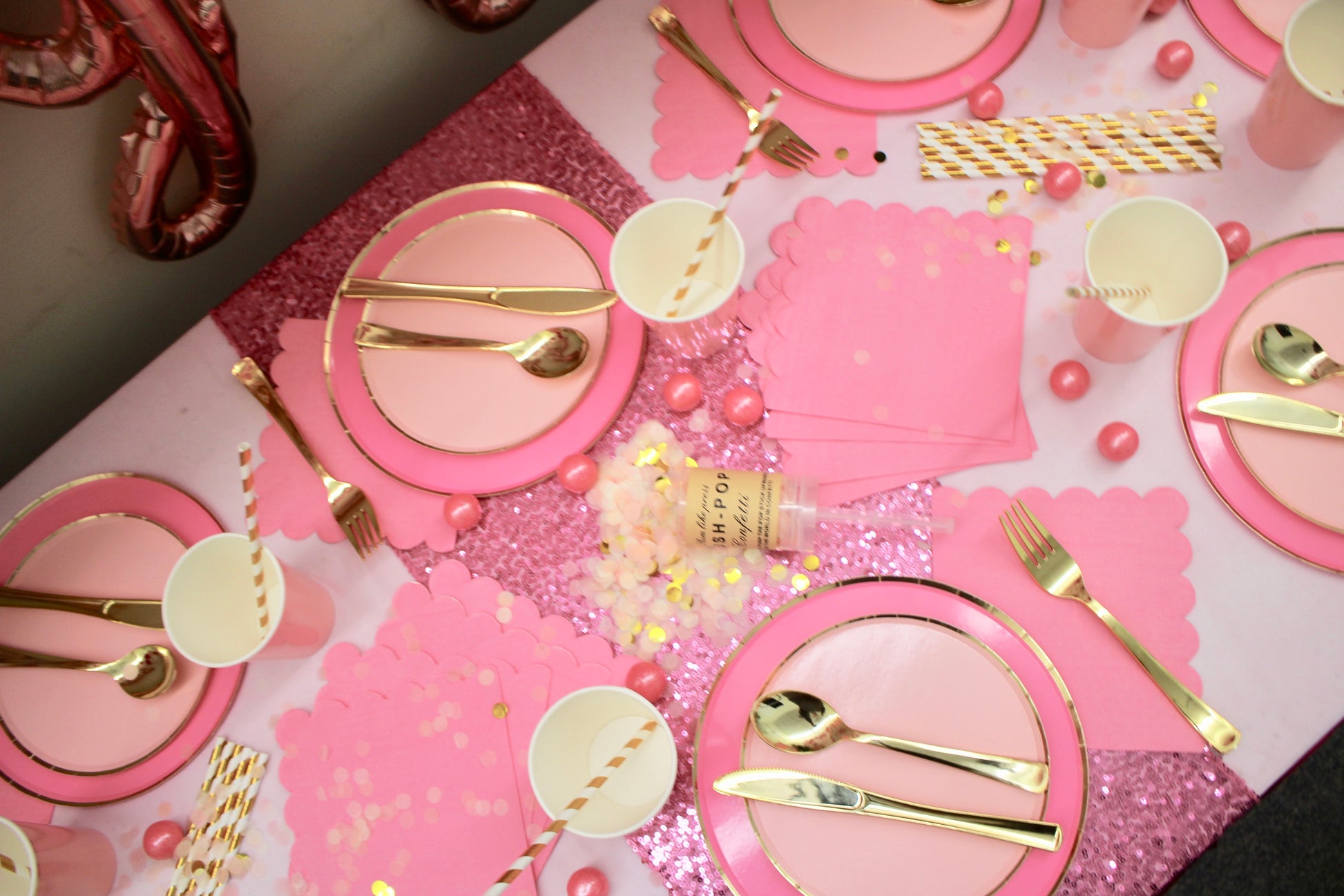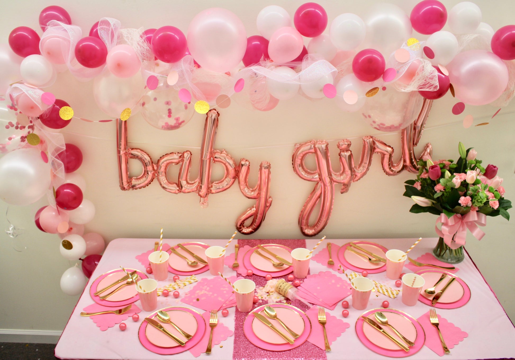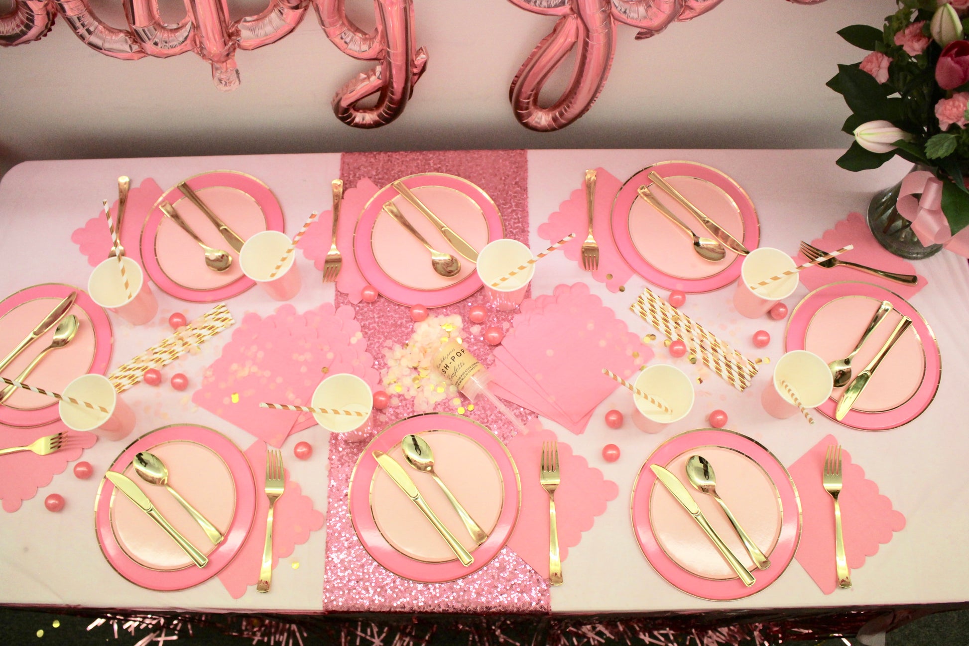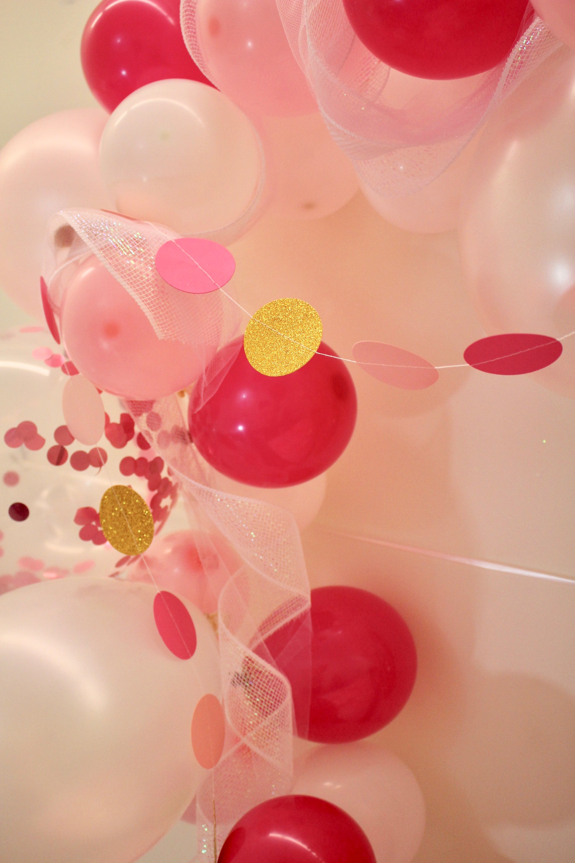 (9) 12” Latex Balloons (3 Light Pink, 3 White & 3 Pink Confetti)