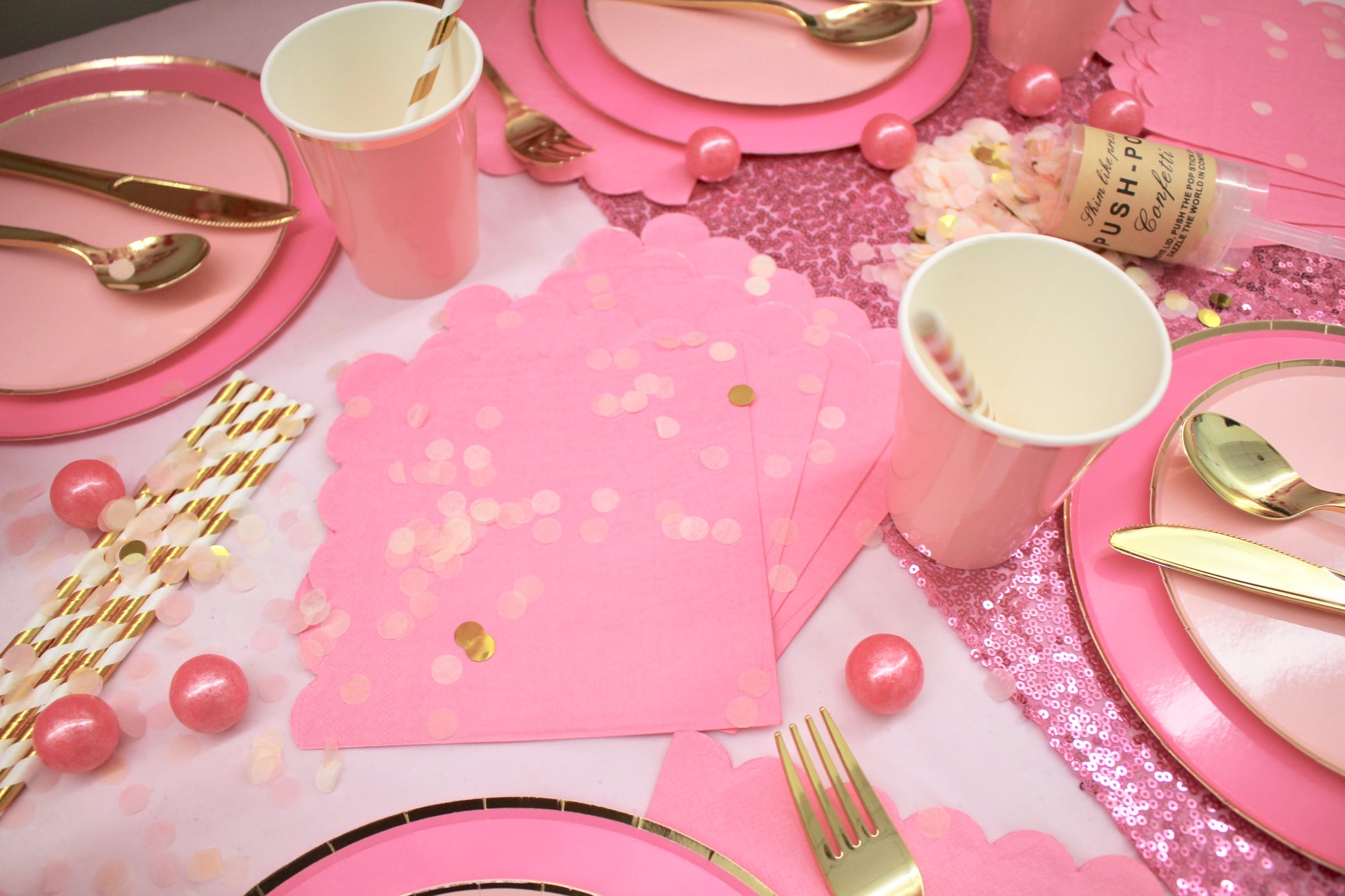 (1) Light Pink & Gold Push Pop Confetti Tube