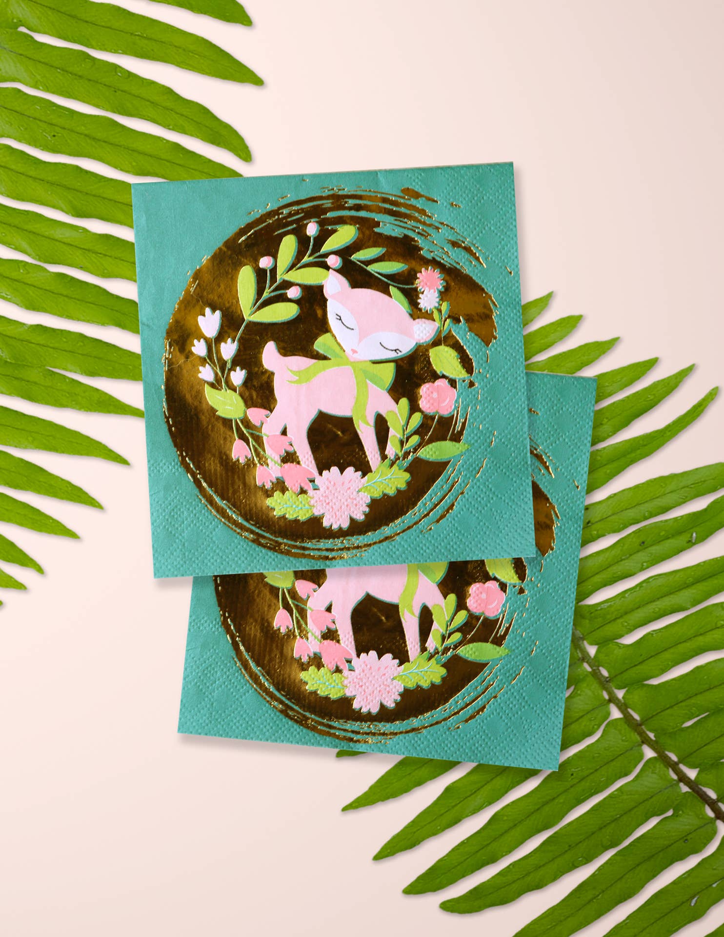 The prettiest party napkins with darling woodland animals, perfect for a baby shower, a birthday party, or a tea party! Features gold foil, and coordinates perfectly with other items from our Woodland Animals collection. Napkins are 3-ply, measure 5x5" and are packaged in sets of 20.